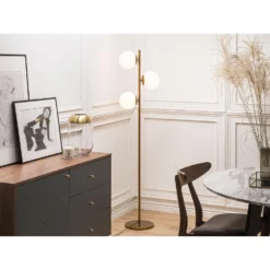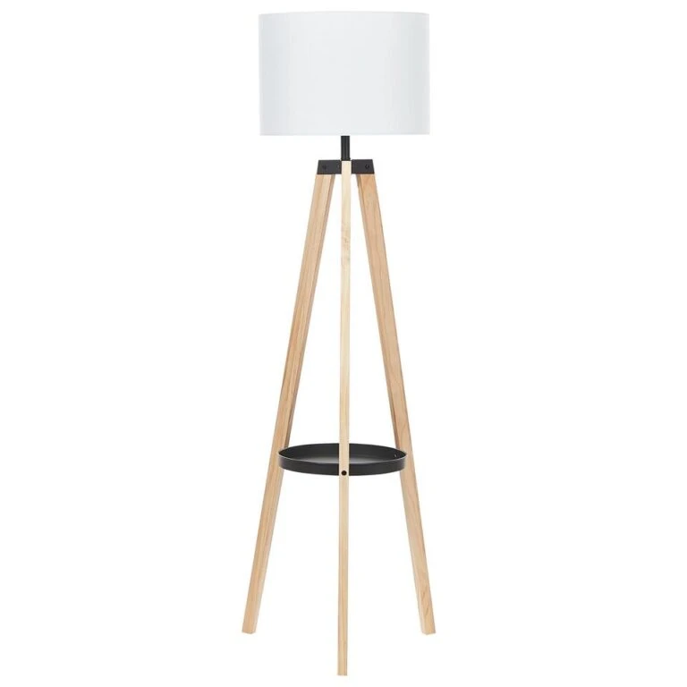 Voeg een vleugje stijl toe aan je interieur met de Beliani Staande Lamp BLUFF in lichte houtkleur dennenhout.