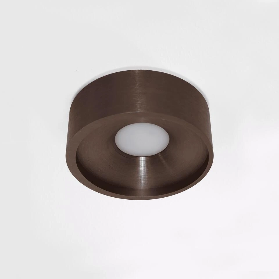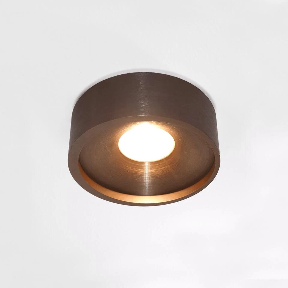 Deze hoge kwaliteits plafondlamp is verkrijgbaar in verschillende kleuren en eventueel perfect te dimmen met een LED wanddimmer (excl.). De doorsnede is 14 cm en de hoogte is 5 cm, de kleur is mat brons.