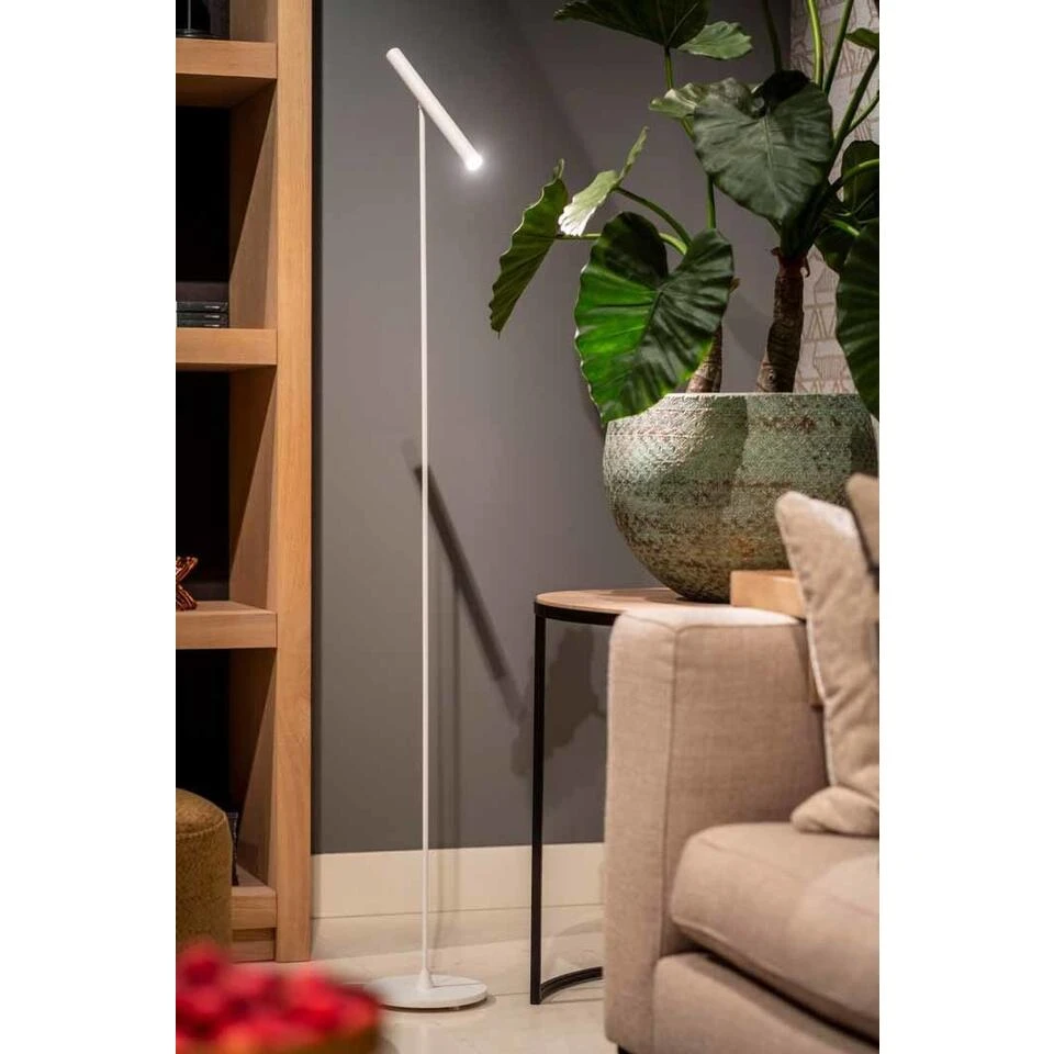 De totale hoogte is 140 cm en de voet heeft een doorsnede van 20 cm, de volledig kantelbare koker heeft een lengte van 27 cm en een doorsnede van 2,5 cm. Kleur: wit.