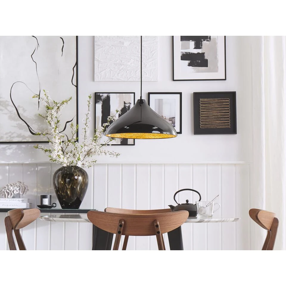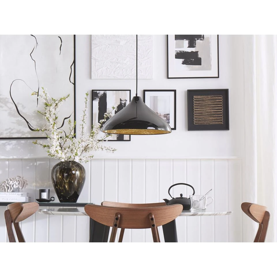 Design hanglamp met gebroken look. De eenvoudige vorm van deze hanglamp wordt perfect aangevuld door de glinsterende glaslook aan de binnenkant van de lamp. De moderne plafondlamp is geschikt voor lampen met een E27-fitting van maximaal 40W. Trendy, modern, stijlvol en ongewoon – deze fantastische lamp biedt veel meer dan alleen mooi licht.