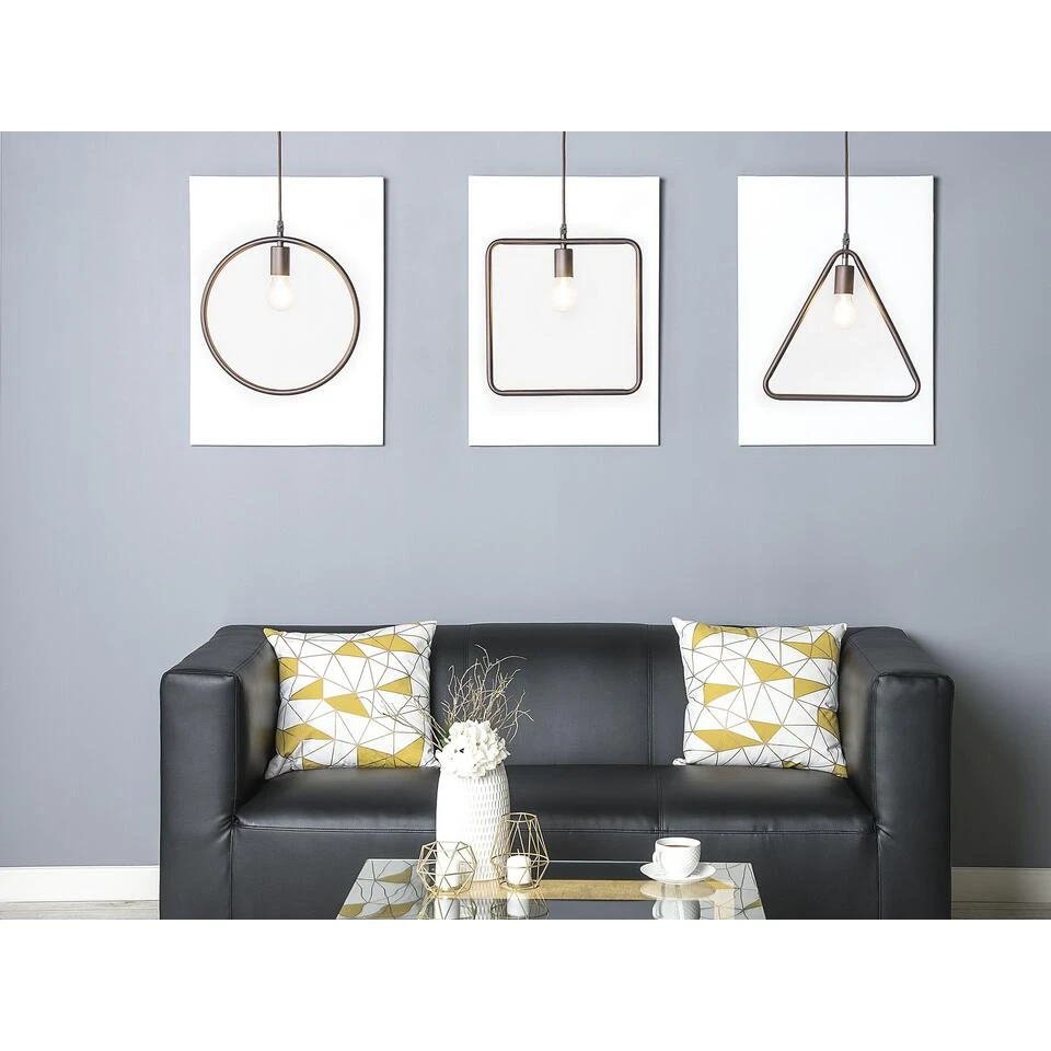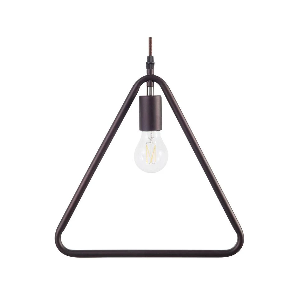 Moderne, driehoekige hanglamp van bruin metaal. Een expressieve lamp, die een groot effect bereikt met zijn moderne en minimalistische ontwerp. De driehoekige vorm geeft deze hanglamp van bruin metaal een moderne uitstraling. De open structuur zorgt voor een onbelemmerd zicht op de lamp en verspreid het licht effectief. De lamp is geschikt voor lampen met de E27-fitting met een maximum van 60W. Lichtbronnen zijn niet inbegrepen.