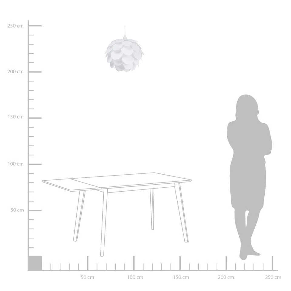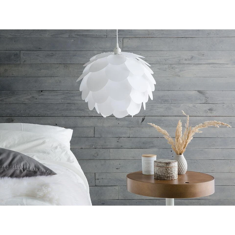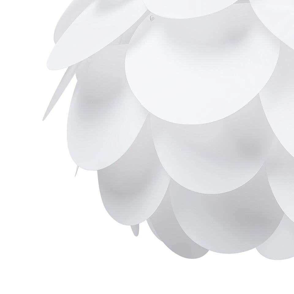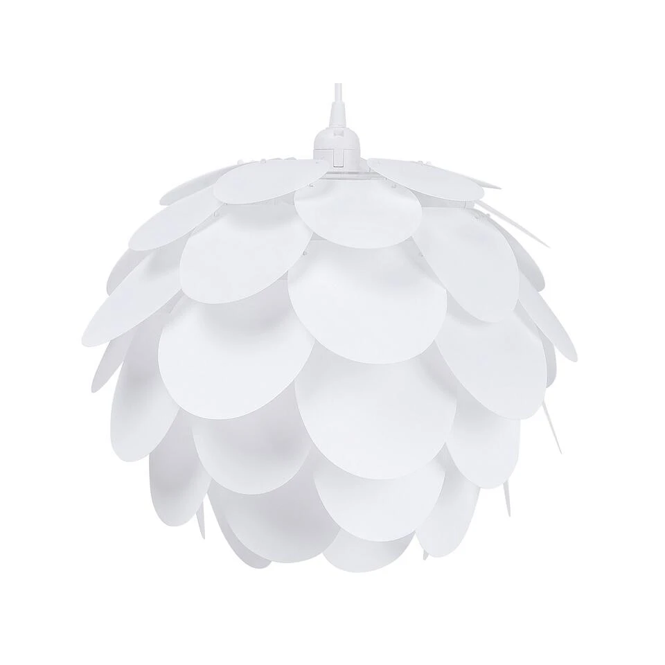 Stijlvolle hanglamp in wit. Geef je kamer een moderne Scandinavische touch. De prachtig overlappende, witte bladeren van de lampenkap vormen een rondachtige bal die lijkt op een dennenappel. Door zijn ongewone structuur is de hanglamp het perfecte decoratieve element, dat ook een aangenaam licht uitstraalt.