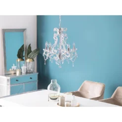 Moderne, verchroomde kroonluchter met kristallen. Met zijn harmonieus gecoördineerde vormen, kan deze kroonluchter elke kamer laten stralen in pure elegantie en luxe. De extra kristallen en kettingen van acrylglas benadrukken de schoonheid van de kroonluchter en creëren subtiele lichteffecten die elke look op magische wijze aantrekken. Het zeer speciale hoogtepunt van elke woonruimte.