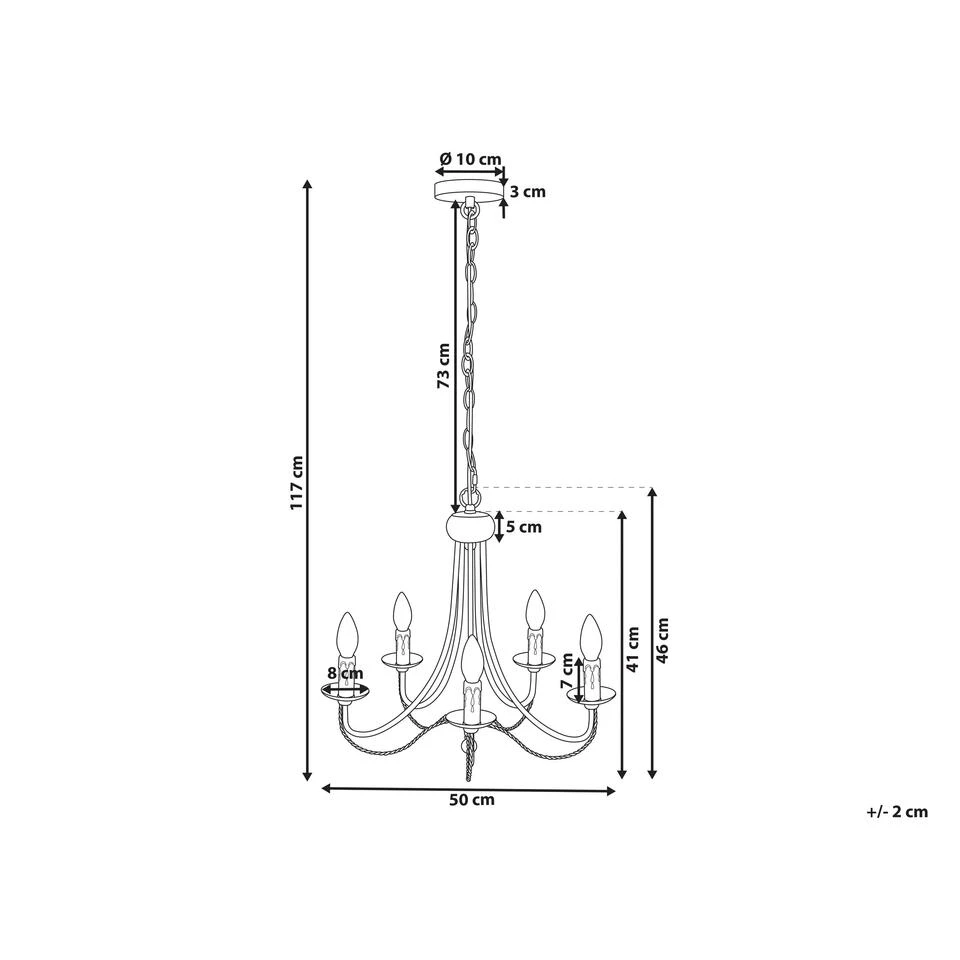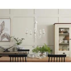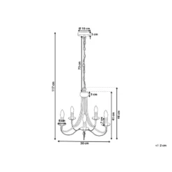 Vintage lamp voor kaarslampen. Geniet van elke maaltijd met je familie en vrienden in een goed verlichte eetzaal met een echte retro-feel. Deze kroonluchter is gemaakt van hoogwaardig materiaal met een geverfde, matte afwerking voor de luxe uitstraling. De armen van de lamp zijn versierd met bijzondere metalen elementen. Bovendien imiteren de fittingen voor de gloeilampen de smeltende was van een brandende kaars.