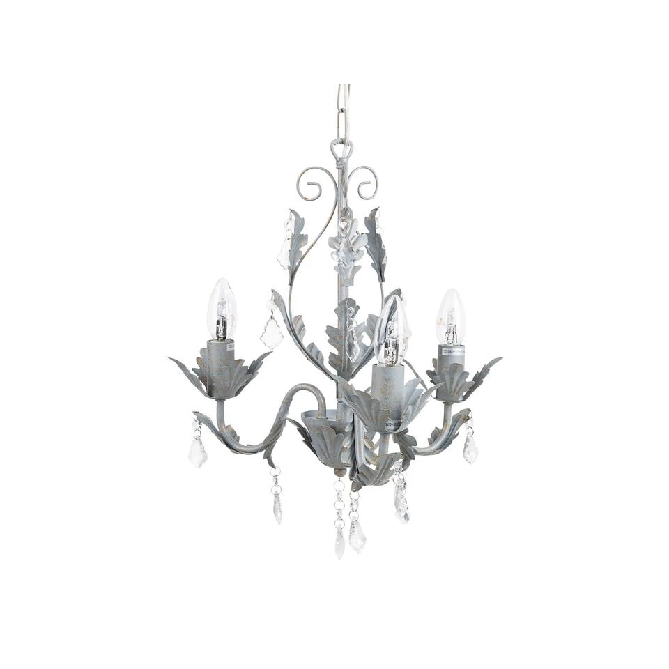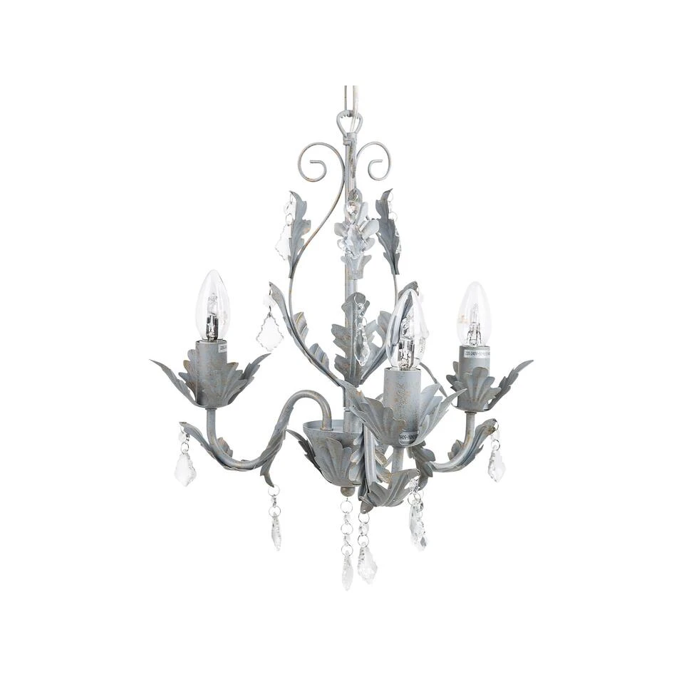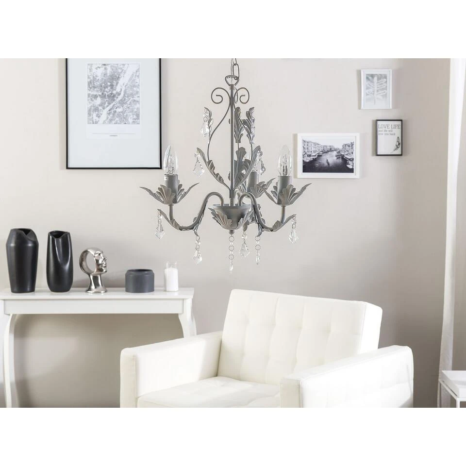 Moderne, grijze kroonluchter. Deze kristallen kroonluchter zal niet onopgemerkt blijven. De prachtige, glanzende elementen creëren een prachtig lichtspel dat jouw inrichting verbetert. Op een subtiele manier creëert het een verfijnde sfeer die elke gast zal betoveren.