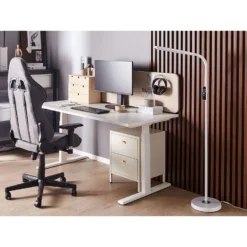 Moderne LED-lamp met dimmer op afstand. Laat je interieur opvallen met deze moderne LED lamp. Het stuk zal veel aandacht trekken dankzij het eigentijdse ontwerp, maar de grootste kracht zit hem in de hoeveelheid functies die de lamp heeft. Ten eerste kan het worden gebruikt als omgevings- en taakverlichting – de kap wordt geleverd met twee lichtbronnen, een aan de bovenkant en een aan de onderkant. Hun intensiteit kan ook worden aangepast met behulp van een handig bedieningspaneel, dat ook dienst doet als afstandsbediening – hiermee kun je ze aan- en uitzetten, de intensiteit en kleurtemperatuur aanpassen. Bovendien kan de arm van de lamp vrij worden versteld – je kunt hem buigen zoals je wilt, zodat je het licht precies kunt richten waar je het wilt hebben. De lamp is gemaakt van hoogwaardig synthetisch materiaal en ijzer, dus je kunt er zeker van zijn dat hij vele jaren meegaat, zelfs zonder dagelijks onderhoud.