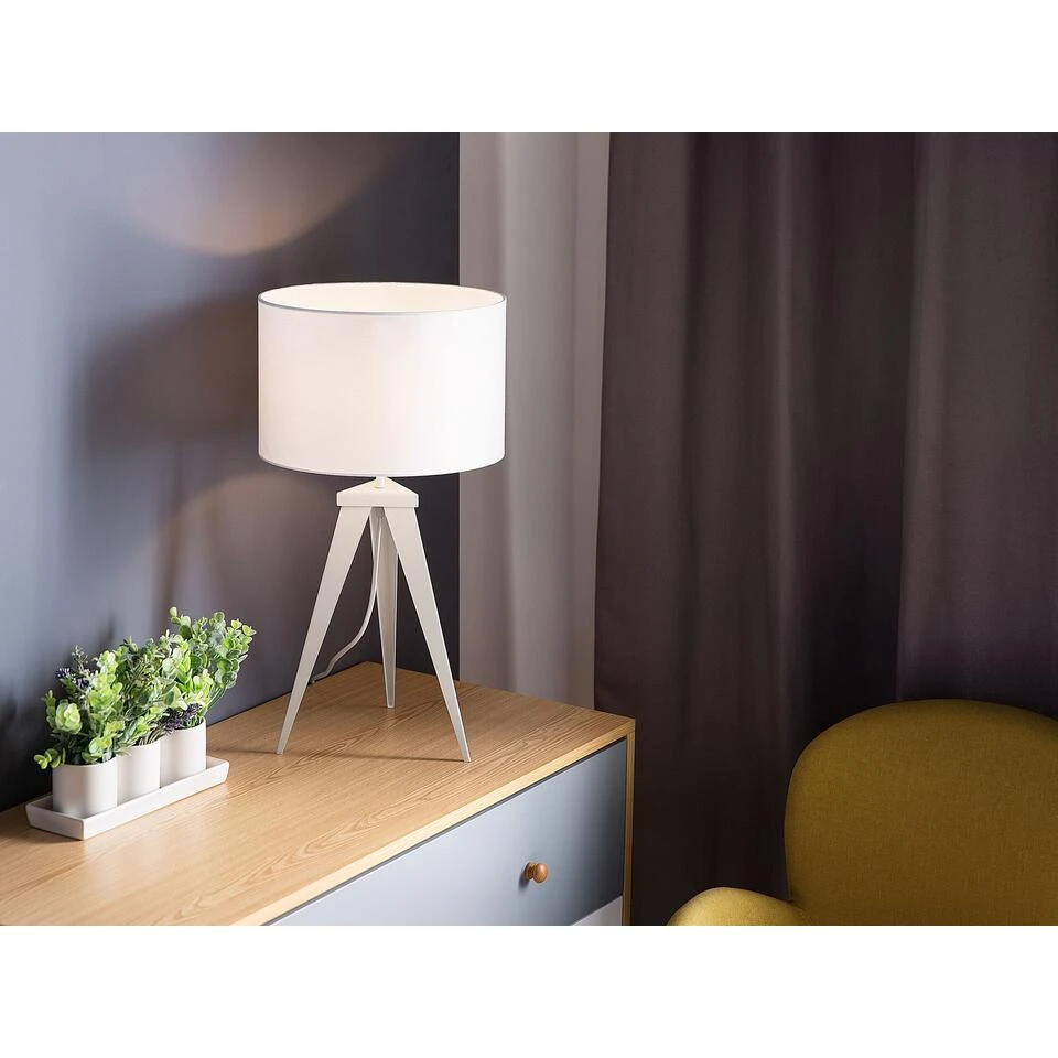 Statief tafellamp in wit. In een moderne sfeer en overal waar individualiteit centraal staat, komt deze decoratieve tafellamp bijzonder goed van tot zijn recht. De ronde, grote lampenkap van polykatoen in klassiek zwart en verspreidt mooi licht. Het driedelige, witte frame met slanke poten van stevig metaal benadrukt de moderne charme. De lamp is uitgerust met een witte PVC-kabel met schakelaar. De Stiletto lampen worden niet gezien als set (tafellamp en staande lamp). Er kan dus een verschil zijn in kleur.
