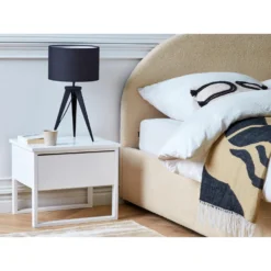 Statief tafellamp in zwart. In een moderne sfeer en overal waar individualiteit centraal staat, komt deze decoratieve tafellamp bijzonder goed van tot zijn recht. De ronde, grote lampenkap van polykatoen in klassiek zwart en verspreidt mooi licht. Het driedelige, zwarte frame met slanke poten van stevig metaal benadrukt de moderne charme. De lamp is uitgerust met een zwarte PVC-kabel met schakelaar.