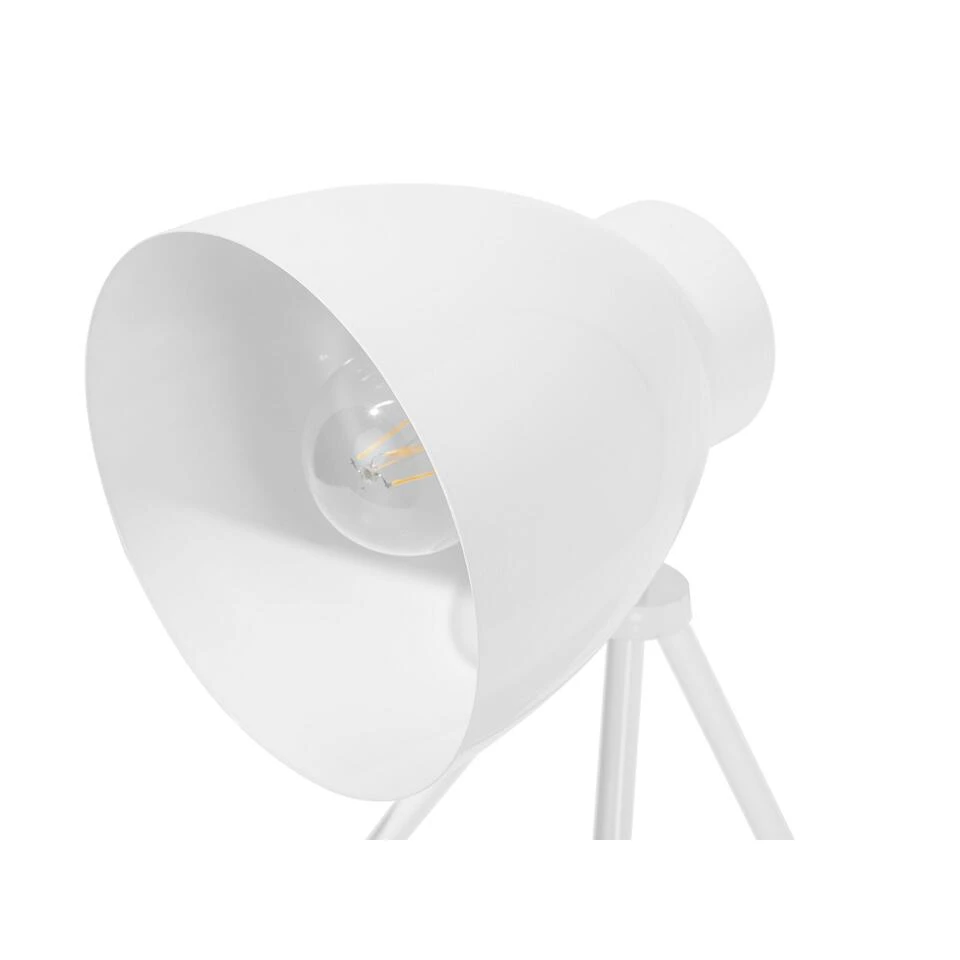Praktische tafellamp in wit in retro design. De verstelbare, ronde lampenkap rust op drie slanke, schuine benen en kan naar wens worden uitgelijnd. Met een standaard en schitterend fel licht is deze tafellamp een veelzijdige inrichtingsoplossing voor elk modern, minimalistisch en stedelijk interieur: als extra verlichting in een moderne woonkamer of als functionele decoratie op een dressoir, als werk- of leeslamp en bedlamp. Het armatuur is uitgerust met een transparante kabel met schakelaar.