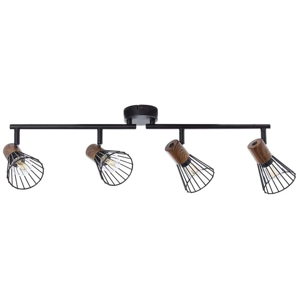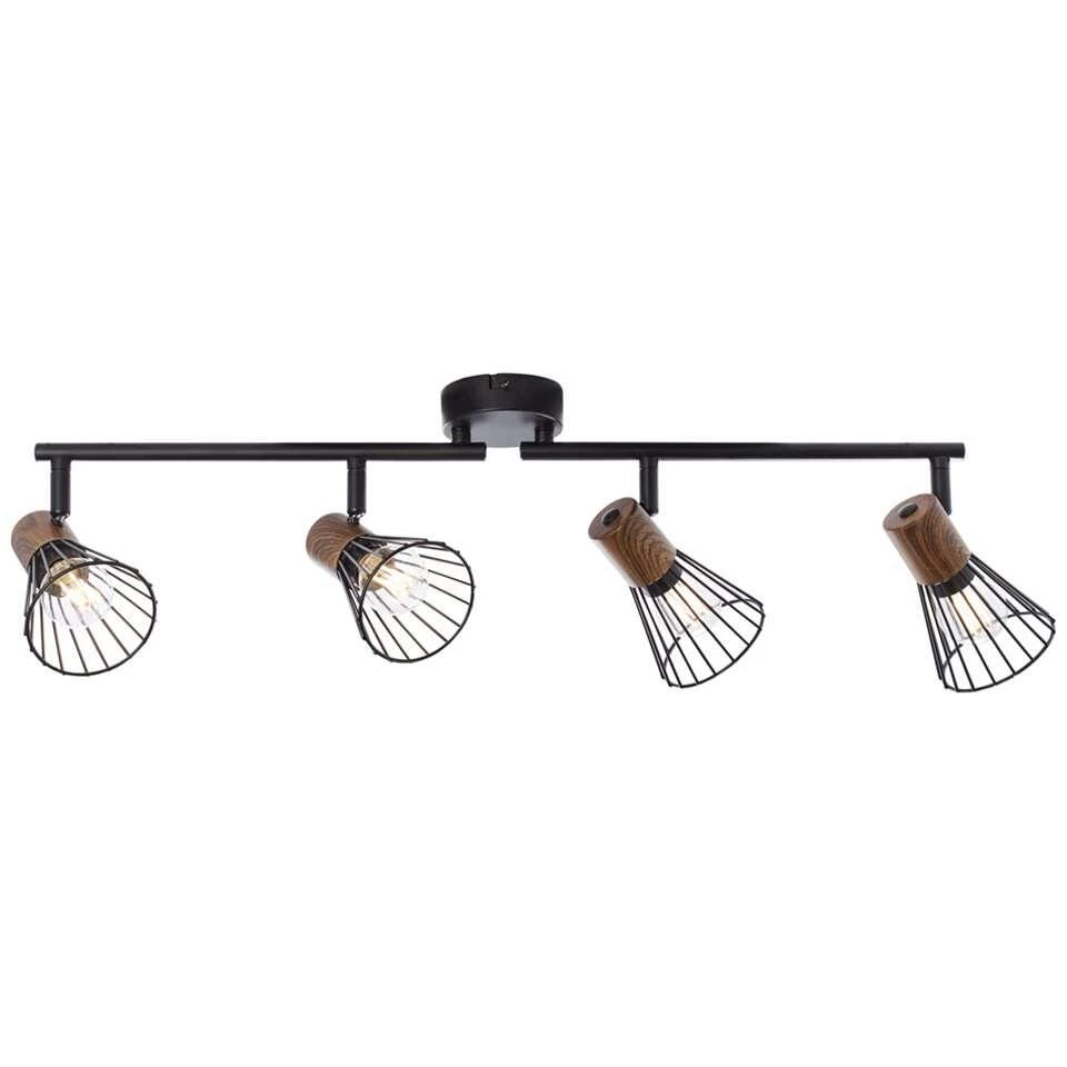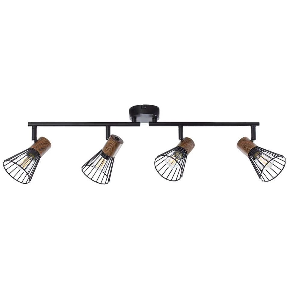 Brilliant 4-spot Manama is een plafondlamp die geschikt is voor diverse woonruimtes. De plafondlamp is gemaakt van metaal en is uitgevoerd in de kleur zwart, inclusief een accent in donker houtkleur. Deze 4-spot is voorzien van een E14 fitting met max. 4x18W en wordt geleverd exclusief lichtbronnen.