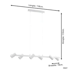 EGLO Gatuela Hanglamp – E14 – 116 cm – Wit/Nikkel-Mat