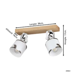 Spot Kilburn van EGLO is met zijn robuuste ontwerp een echt plaatje! Deze bruin met witte lamp is niet alleen functioneel maar ook nog eens heel sfeervol. Spot Kilburn is een echte eyecatcher in elke woon- en/of werkruimte. Maak jouw industriële interieur helemaal compleet met deze lamp. Door de lichtpunten te kantelen zet jij een bijzonder plekje in je huis in de schijnwerpers.