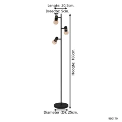 EGLO Lurone Vloerlamp – E27 – 160 Cm – Zwart/Koper