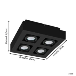 Opbouwlamp Mendoza van EGLO is met zijn vierkante ontwerp een echt plaatje! Deze zwarte lamp is niet alleen functioneel maar ook nog eens heel sfeervol. Opbouwlamp Mendoza is een echte eyecatcher in elke woon- en/of werkruimte. Maak jouw strakke interieur helemaal compleet met deze lamp.