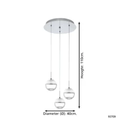 De EGLO hanglamp Montefio 1 is een LED lamp gemaakt van staal met een chromen afwerking en glas waarin kristallen liggen. Deze energiezuinige hanglamp heeft een verbruik van slechts 3X5W. De hanglamp Montefio 1 is geschikt voor toepassing in diverse woonruimtes. Kenmerken EGLO Montefio 1: