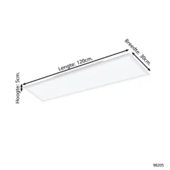 • Strakke plafondlamp van H 5 x L 120 x B 30 cm
