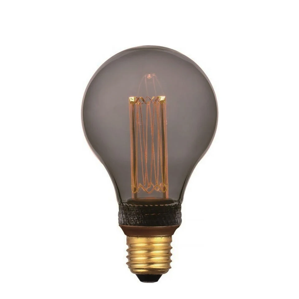 Een Rook LED-lamp met de uitstraling van een ouderwetse kooldraad gloeilamp. Deze globe bol heeft een diameter van 7,5 cm, de totale hoogte is 13 cm. Het rookglas en het “kooldraad” effect geven aan elke armatuur een unieke uitstraling. De lichtkleur is 1800 Kelvin en dat is een mooie sfeervolle en warme kleur.
