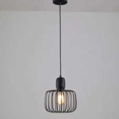 Sierlijk en strak, deze kleine Freelight Costola hanglamp is verrassend in vorm en uitvoering. Doordat het licht door de metalen spijlen wordt geleid ontstaat er een verassend licht effect. Zeer geschikt voor een mooie sier filament LED lamp die zorgt voor een ouderwetse sfeer. Deze leuke hanglamp is leverbaar in 4 maten en tevens zijn er ook andere type lampen van de Costola serie te verkrijgen. Tip: hang boven een langere tafel 2 of 3 van deze Costola lampen en hierdoor ontstaat er een mooie lichtverdeling.Deze Costola hanglamp heeft een doorsnede van 25 cm en de hoogte van de kap is ook 25 cm, de totale hoogte is 150 cm en simpel in te korten. Kleur: mat-zwart met zwart stoffen snoer. Geschikt voor een lichtbron E27 van maximaal 40 Watt (Excl.).