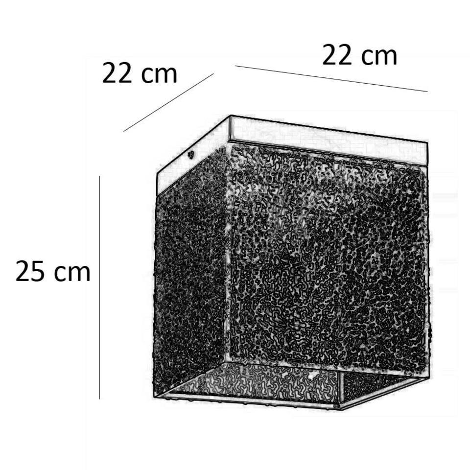 De totale hoogte van dit armatuur is 25 cm en de breedte is 22 cm. Kleur: zwart – goud metaal. Geschikt voor 1 LED lichtbron van maximaal 40 Watt E27 (excl.).
