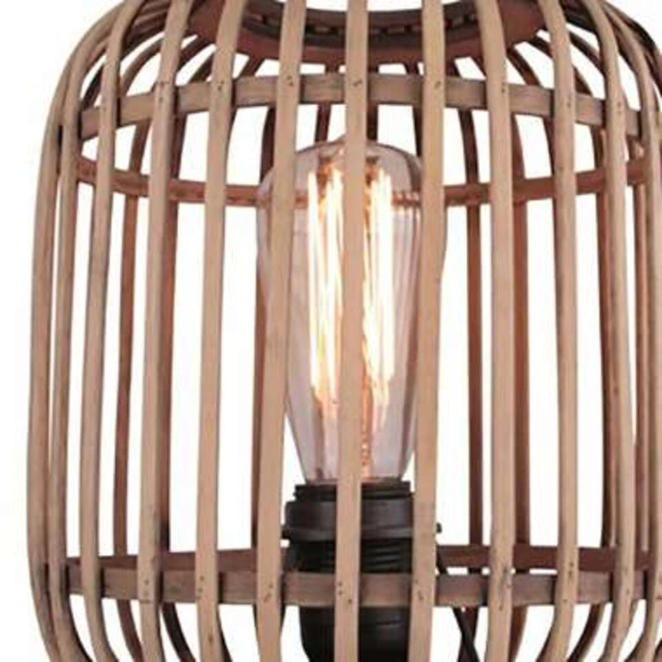 Haal de Ibiza stijl in uw woonkamer met de Treccia serie van Freelight. Deze leuke tafellamp is voorzien van een rotan kap die geschikt is voor 1 lichtbron E27 van maximaal 40 Watt (excl.). De bovenkant van de korf heeft een opening om simpel een mooie (LED Filament) lichtbron in te draaien. De kap bestaat uit houten latjes die mooi in een korf gevormd zijn.
