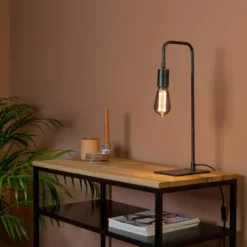 Giga Meubel Tafellamp 1-Lichts Zwart – Staal – Gun Metal – Lamp Kevin