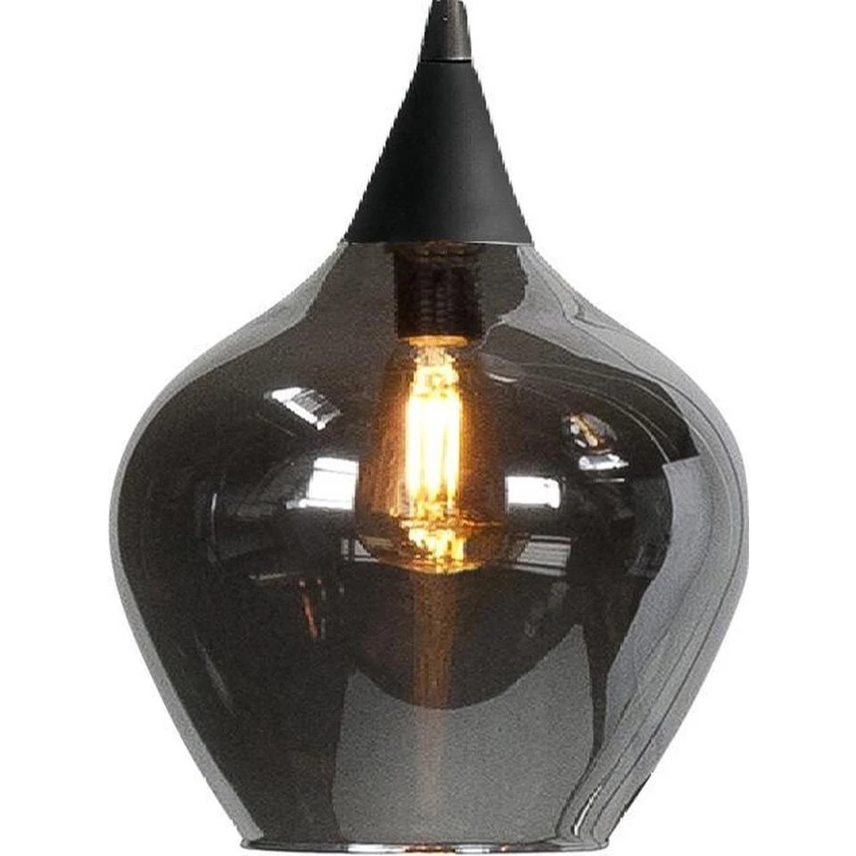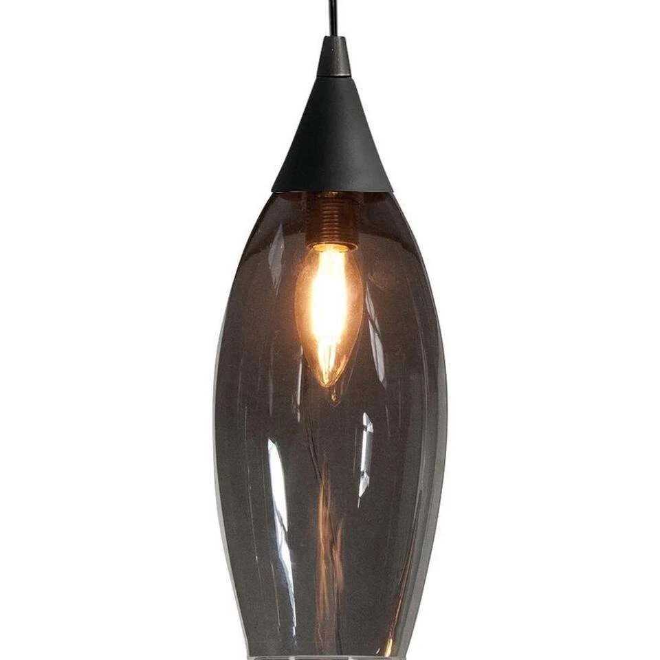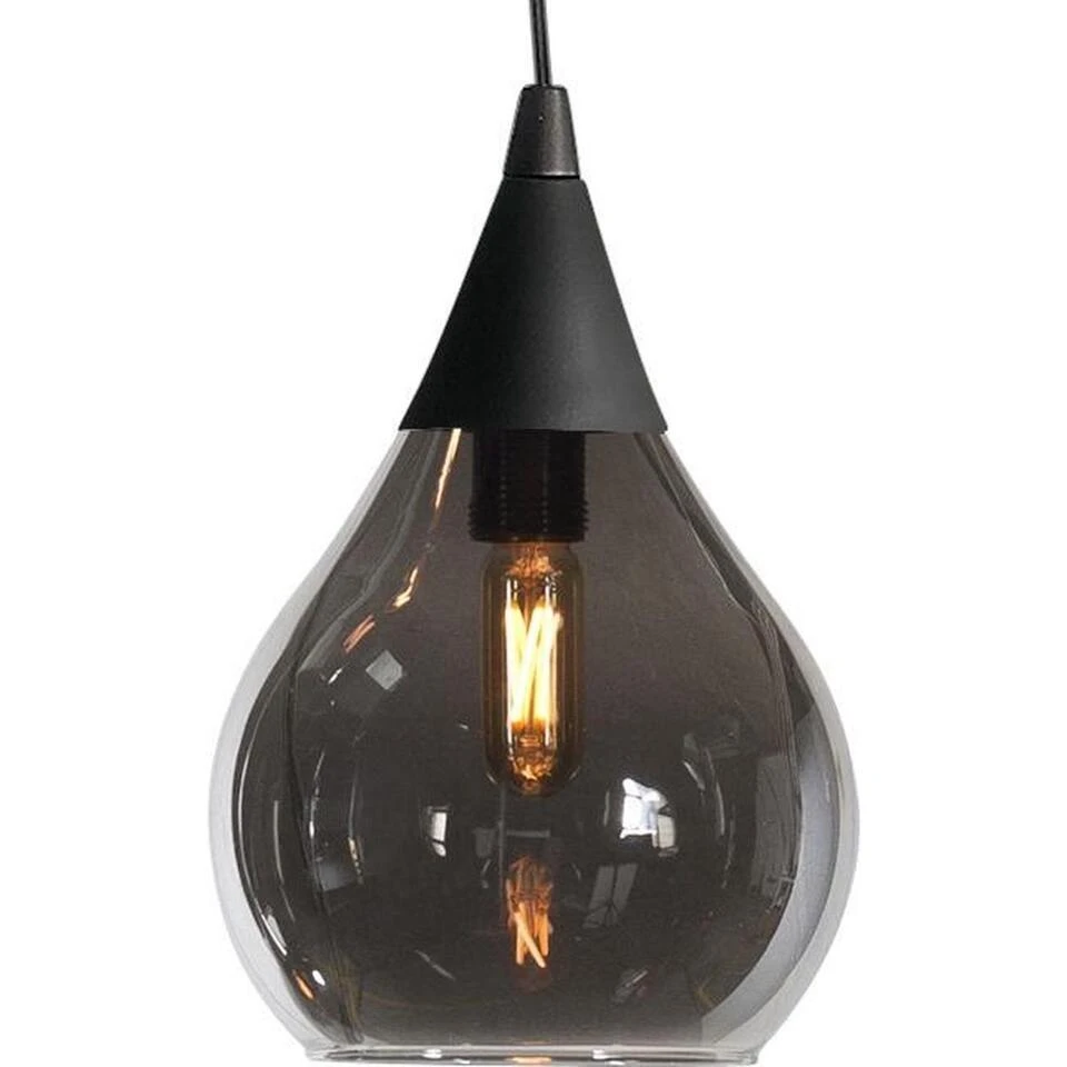 Geschikt voor lichtbronnen van maximaal 40 Watt E14 (excl.), kleur: zwarte plafondplaat met zwart snoer en rook kleurig transparant glas.
