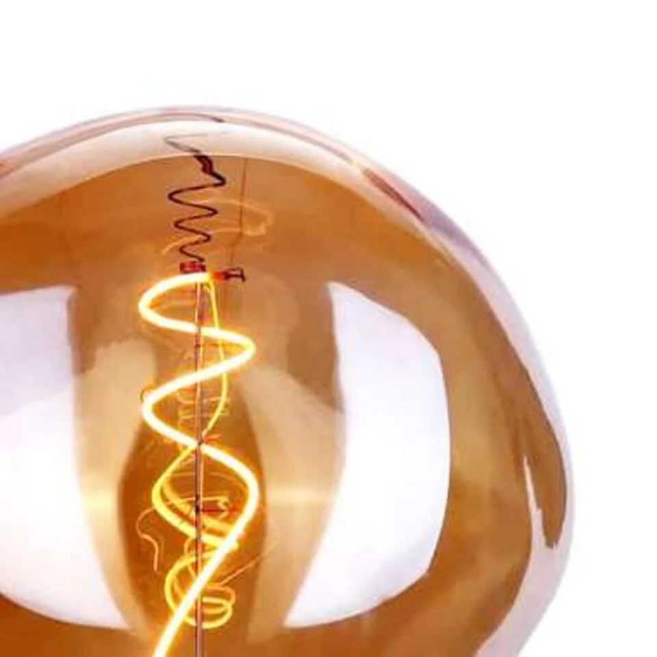 Een Rook XXL LED-lamp met de uitstraling van een ouderwetse kooldraad gloeilamp. Deze mega globe bol heeft een diameter van 16,5 cm, de totale hoogte is 27,5 cm. Het Amber kleurige glas en het “kooldraad” effect geven aan elke armatuur een unieke uitstraling. De lichtkleur is 2200 Kelvin en dat is een mooie sfeervolle en warme kleur.