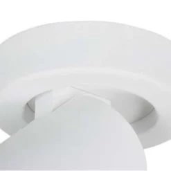 Deze 1 lichts spot is eventueel ook geschikt om aan de wand te monteren. De cilinder heeft een diameter van 5,8 cm en een lengte van 8 cm. De totale hoogte is 13 cm en de breedte van de plafondplaat is 10 cm. De plafondplaat heeft een hoogte van 2,5 cm. Kleur: Mat-wit. Niet geschikt om te gebruiken in de badkamer.