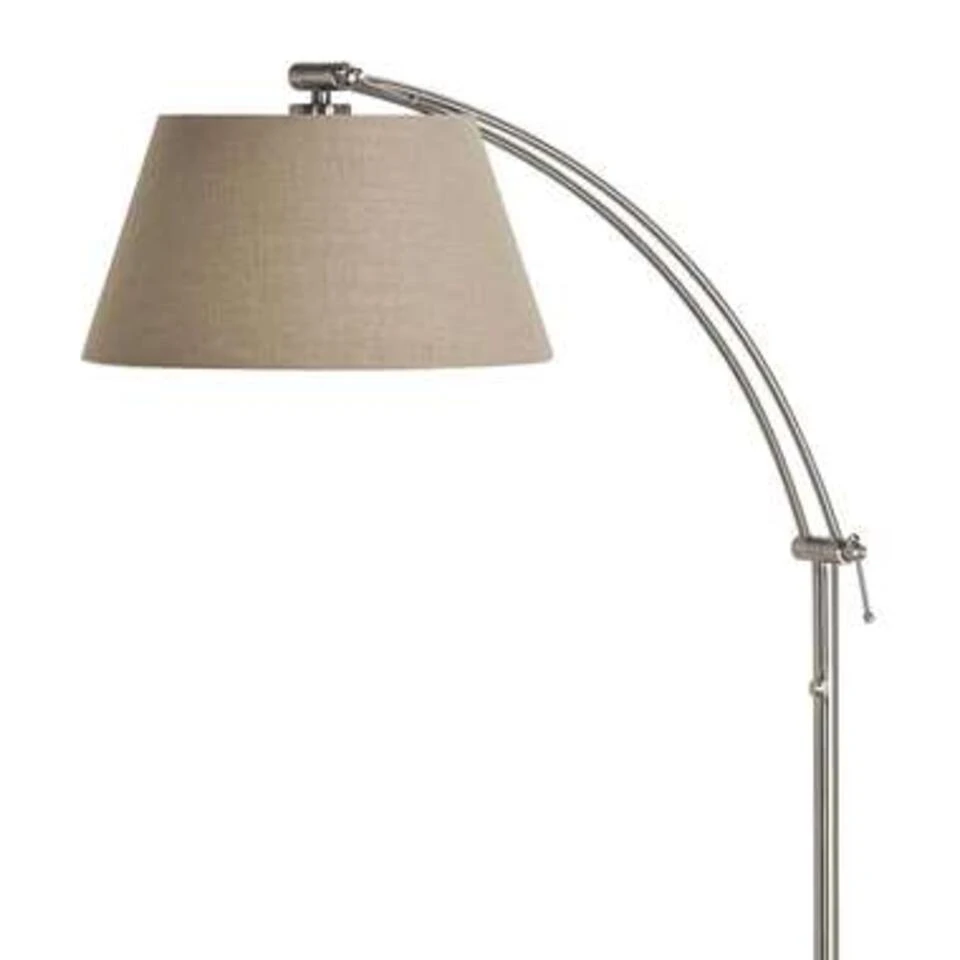 Verstelbare vloerlamp voorzien van een stoffenkap en inclusief een touch dimmer op de stang. De kap is Taupe kleurig en het metaal is mat-chroom van kleur. Eventueel is het ook mogelijk om een andere (kleur) kap te bestellen op dit armatuur, neemt u hiervoor contact op met ons