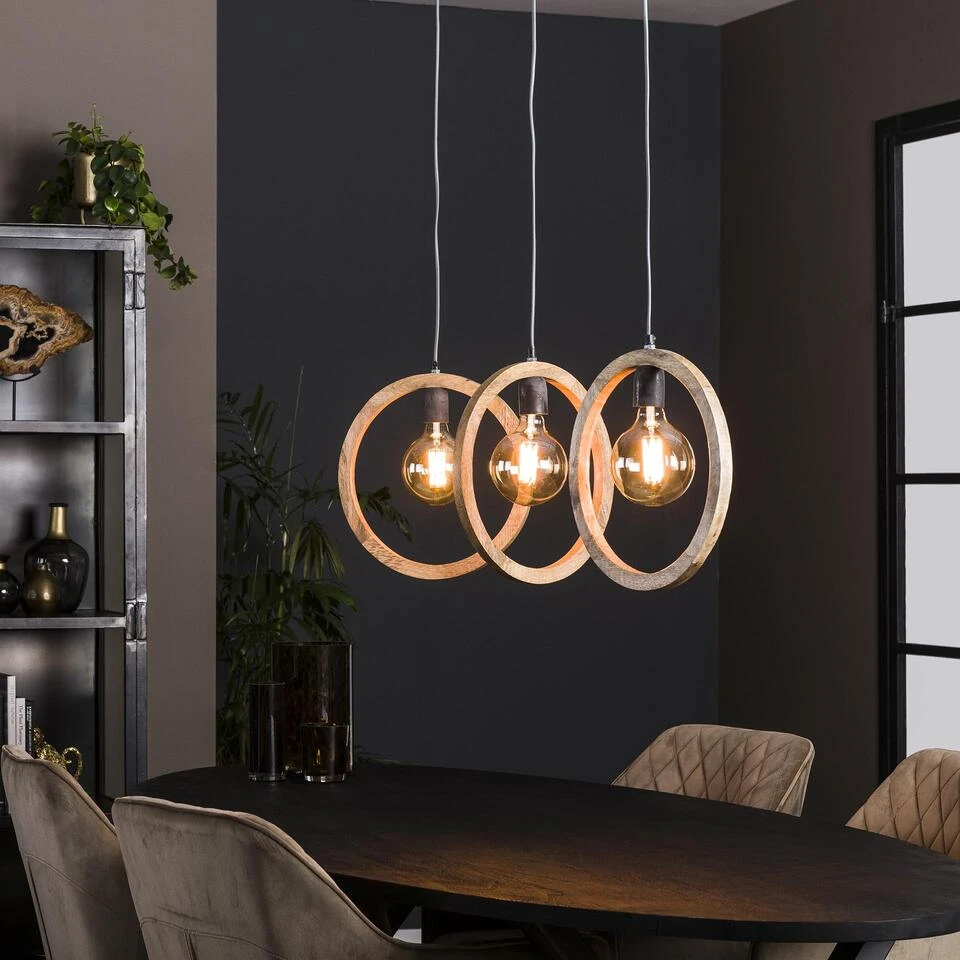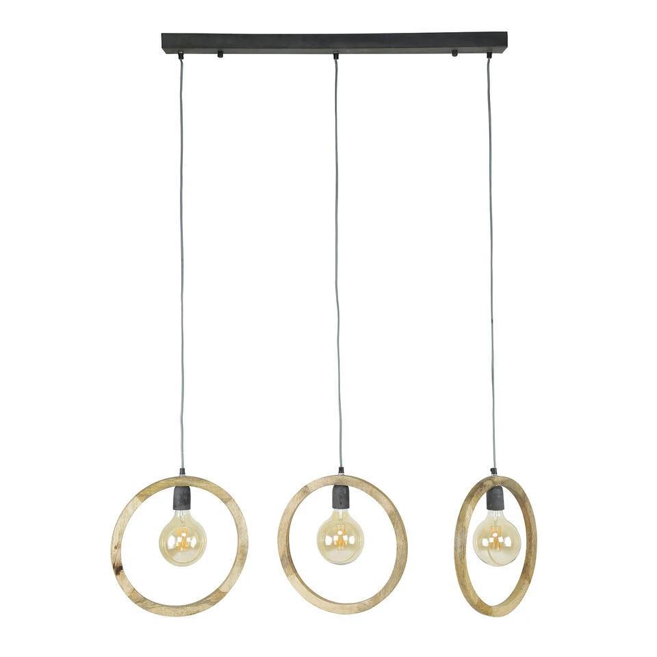 Hoyz – Hanglamp Round Wood – 3 Lampen – Massief Mango Naturel – 97x35x150