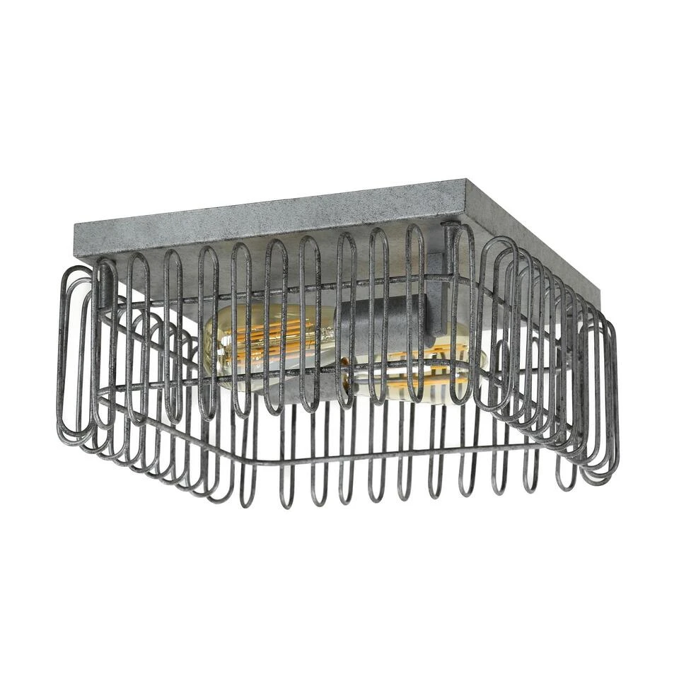 Industriële Plafondlamp Toby Oud Zilver 2-lichts – 35x35x15 Cm – Metaal – Grijs