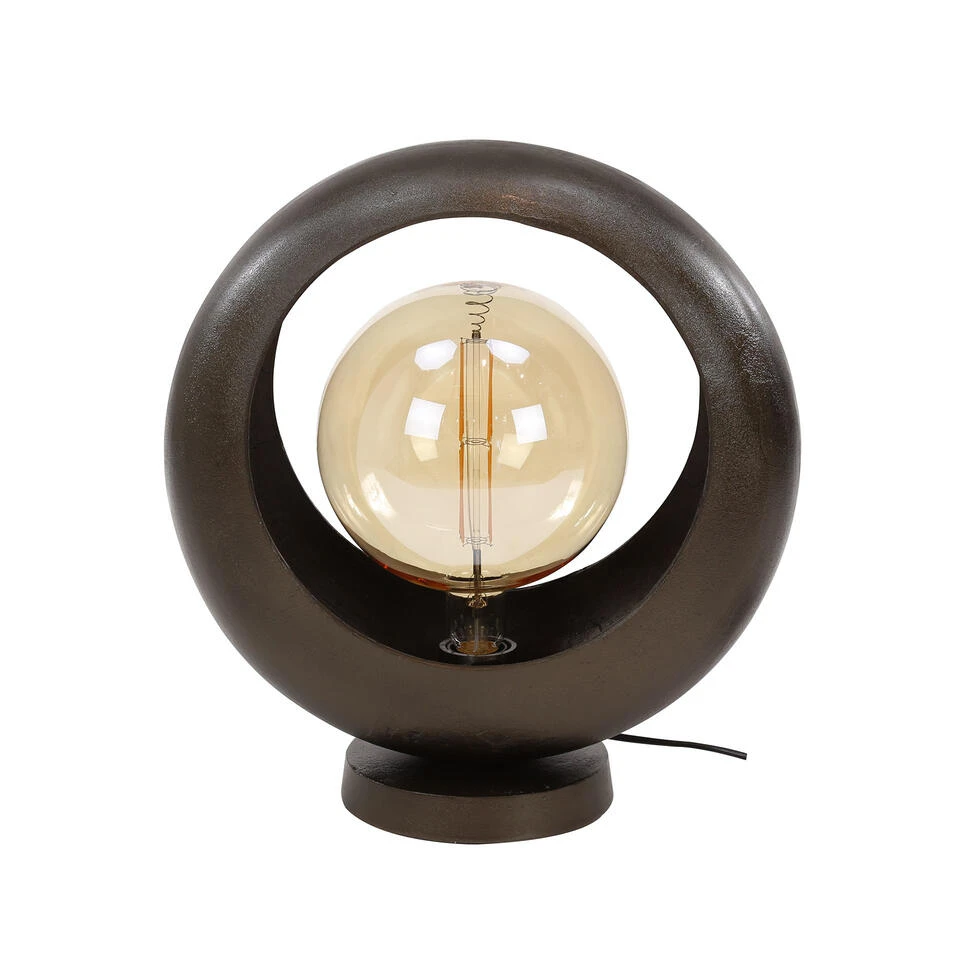 Industriële Tafellamp Mia Aluminium Rond Groot – 18x18x44 Cm – Aluminium – Zwart