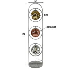 Deze industriële vloerlamp Ada is een echte eye-catcher! De lamp is uitgevoerd in metaal in de kleur oud zilver met drie glazen kappen. De kleur van het metalen frame is niet helemaal gaaf wat zorgt voor een stoere look. De kappen zijn uitgevoerd in drie verschillende kleuren, namelijk: goud, koper en chroom. De kappen kunnen los gehaald worden waardoor de lichtbron gemakkelijk geplaatst kan worden. Het metalen frame gecombineerd met de gekleurde glazen bollen is niet alleen stoer maar straalt ook luxe uit. Vloerlamp Ada is een echte eye-catcher in jouw woonkamer en past niet alleen goed in een industrieel interieur maar ook in een modern chique interieur!