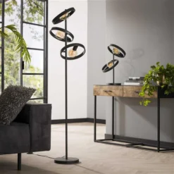 De industriële vloerlamp Otan is uitgevoerd in metaal en bevat een charcoal finish. De kleur is dus niet helemaal gaaf. Deze afwerking maakt de lamp erg stoer. De combinatie van het strakke design, de ronde vormen en deze afwerking maakt de Otan een stoere lamp met een industrieel karakter.
