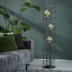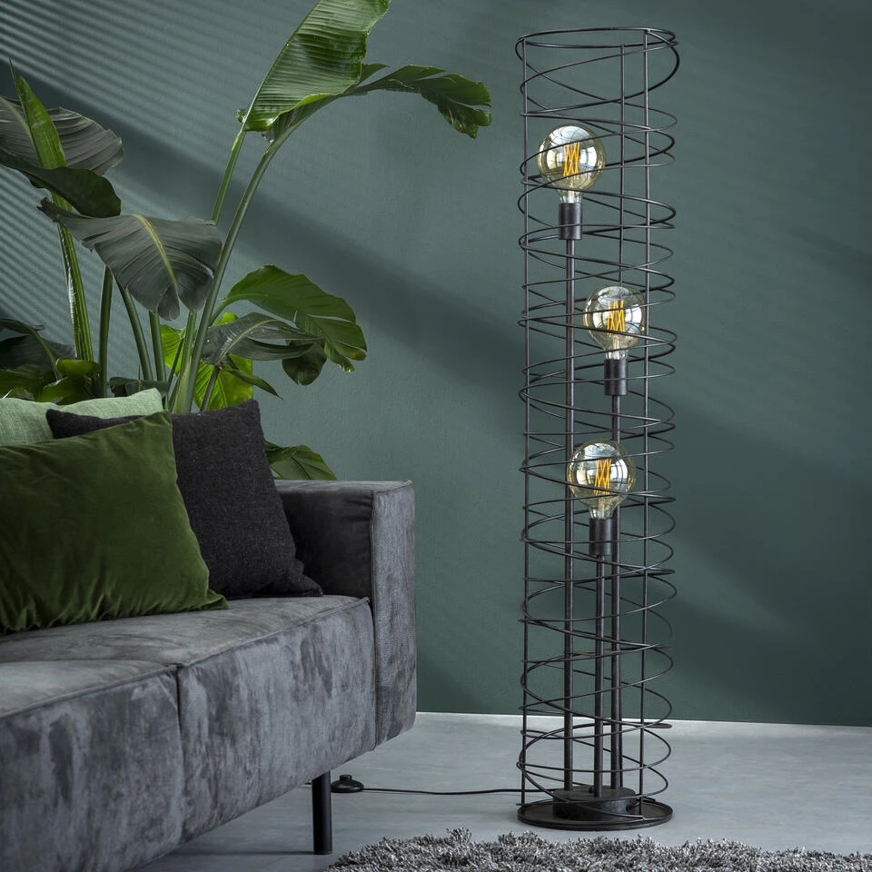 Industriële Vloerlamp Selin Spiraal 3-lichts Zwart 140x28x140 Cm Metaal