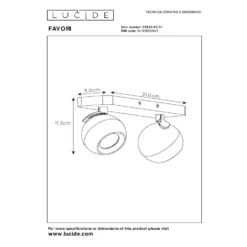 Favori, dat is ‘spot on’, in tweevoud. De twee elegante, bolvormige spots hechten zich vast aan een rechthoekige plafondplaat. Toch zijn ze uiterst wendbaar. Zo heb jij altijd en overal het licht hoe jij het wil. Extra krachtig door ze samen te richten, speels door ze af te wenden. De dubbele dimbare opbouwspot voelt zich in zijn nopjes in je woonkamer boven een commode, in de gang of zelfs in de slaapkamer. Favori is 9 centimeter breed, 31 centimeter lang en iets meer dan 11 centimeter hoog.