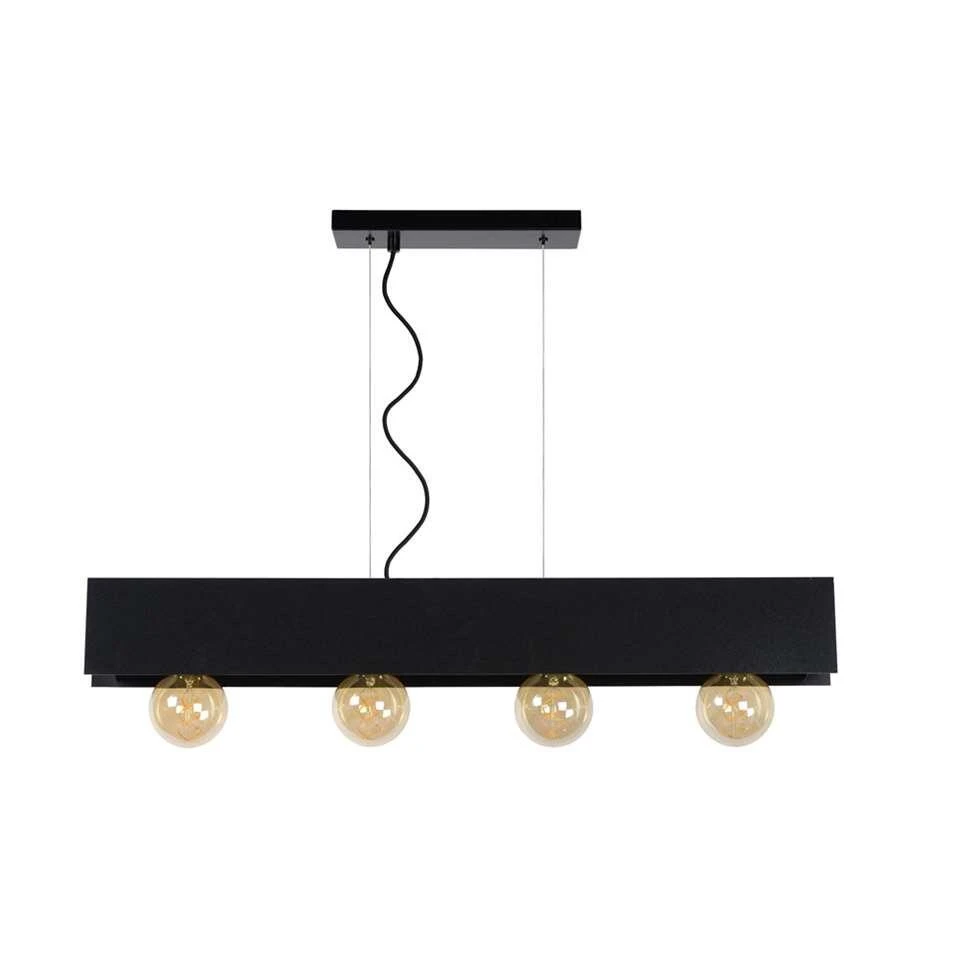 Lucide hanglamp Surtus is zwart en gemaakt van staal. De vier lichtpunten van deze hanglamp, gemonteerd tussen twee stalen platen, lijken op het eerste gezicht enkel met het textielsnoer aan de plafondplaat bevestigd. Maar niets is minder waar: twee sterke stalen kabeltjes zijn de quasi onzichtbare dragers van de moderne structuur. De slanke uitwerking van het metalen kader is een absolute meerwaarde voor elke hedendaagse inrichting. De (filament)lampen verspreiden hun licht diffuus. Zo licht deze lamp elke ruimte op.