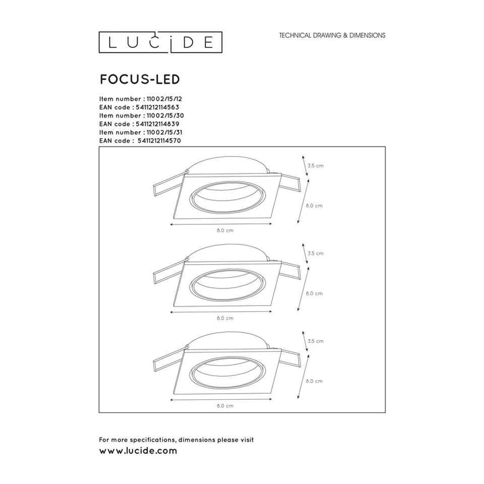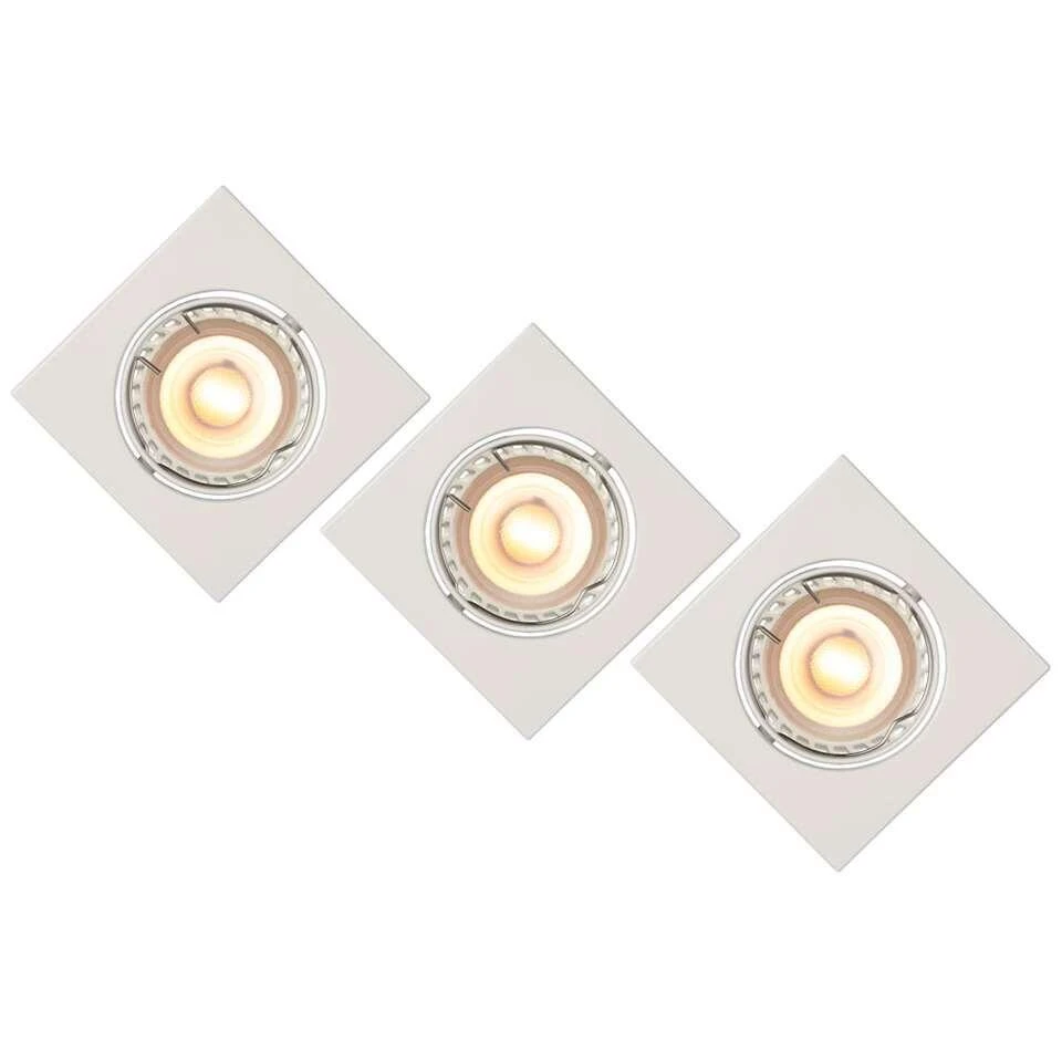 Strak inbouwspotje met dimbare GU10 LED spot, geleverd in een handige set van 3. De Focus is geschikt om in te bouwen in uw valse plafonds en perfect richtbaar om zowel de hele kamer als een muur uit te lichten.