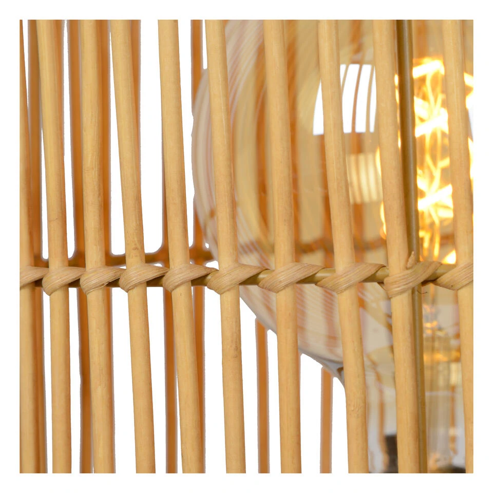 Deze vloerlamp heet Jantine. Ook al is ze met haar 125 centimeter hoogte een opvallende aanwezige in je ruimte, toch brengt ze ook rust en warmte. De geslaagde combinatie van de cilindervormige lampenkap in rotan en de drie metalen steunen als voet passen helemaal in een Scandivanische sfeer. Ook wie van een moderne urban jungle houdt voor zijn interieur, kan Jantine wel smaken. Combineer deze staande lamp met een duurzame ledlichtbron voor een optimaal effect. Je bedient haar via de schakelaar in het snoer.