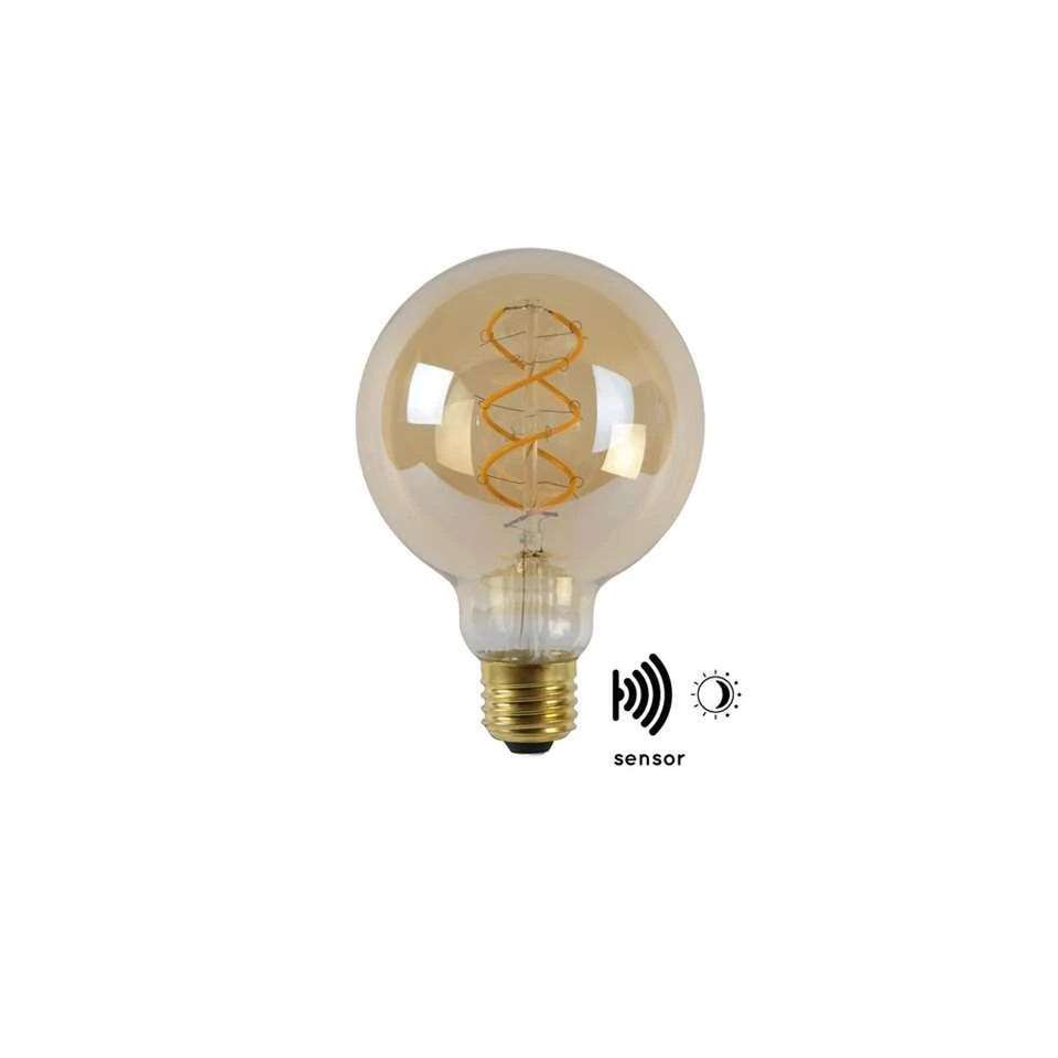 Met de Lucide Twilight Sensor LED Filament lamp kun je een bestaande buitenlamp omzetten naar een versie met dag/nacht schakeling. De lamp is namelijk voorzien van een ingebouwde schemerschakelaar. Deze lux-sensor of day/night-switch doet de lamp ’s avonds automatisch aanspringen, en schakelt ze ’s morgens weer uit. Jouw buitenlamp of tuinarmatuur krijgt bovendien een unieke uitstraling door het amberkleurig glas en het zichtbare, spiraalvormige filament van deze led lichtbron. Het extra warmwitte en diffuus licht creëert functioneel sfeerlicht aan de inkom van je woning en zorgt voor de perfecte mood in je tuin. Praktisch, energiebesparend en dus ook nog eens goed voor de portefeuille en het milieu! De sensor is voorgeprogrammeerd op basis van de volgende lichtsterktes: bij schemerlicht onder 25 lux springt de lichtbron aan, en bij daglicht van meer dan 30 lux schakelt ze automatisch terug uit.