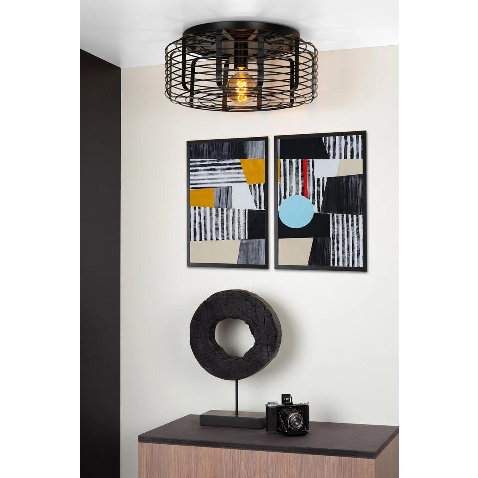 Haal de industriële look in huis met Melopee. Deze opengewerkte plafondlamp toont de filament lichtbron in al zijn glorie. Uitgevoerd in hoogwaardig staal is Melopee met zijn diameter van 45 centimeter en bijna 20 centimeter lengte een stevige verschijning aan je plafond. Plaats hem niet boven je favoriete schilderij want het zou kunnen dat hij met de aandacht gaat lopen. Je schakelt Melopee makkelijk aan op een externe dimmer. Zo speel je moeiteloos met licht en reflectie in je interieur.