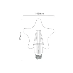 Star is een ledfilamentlamp in de vorm van een ster. Verrassend, toch? Deze lichtbron meet 14,3 x 6 x 18,1 centimeter en is uitgerust met extra warm wit licht van 2200K. Ze beschikt over een lichtopbrengst van 550 lumen. De perfecte match voor een kinderkamer of voor een speels accent in je interieur.