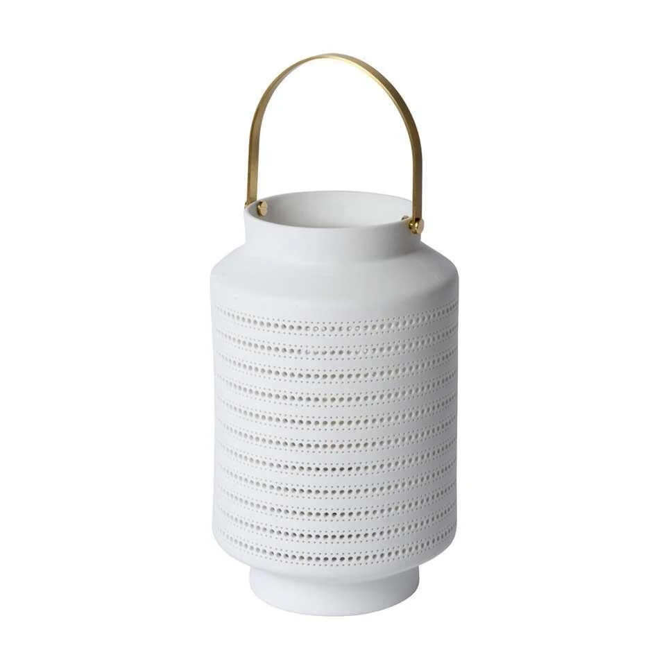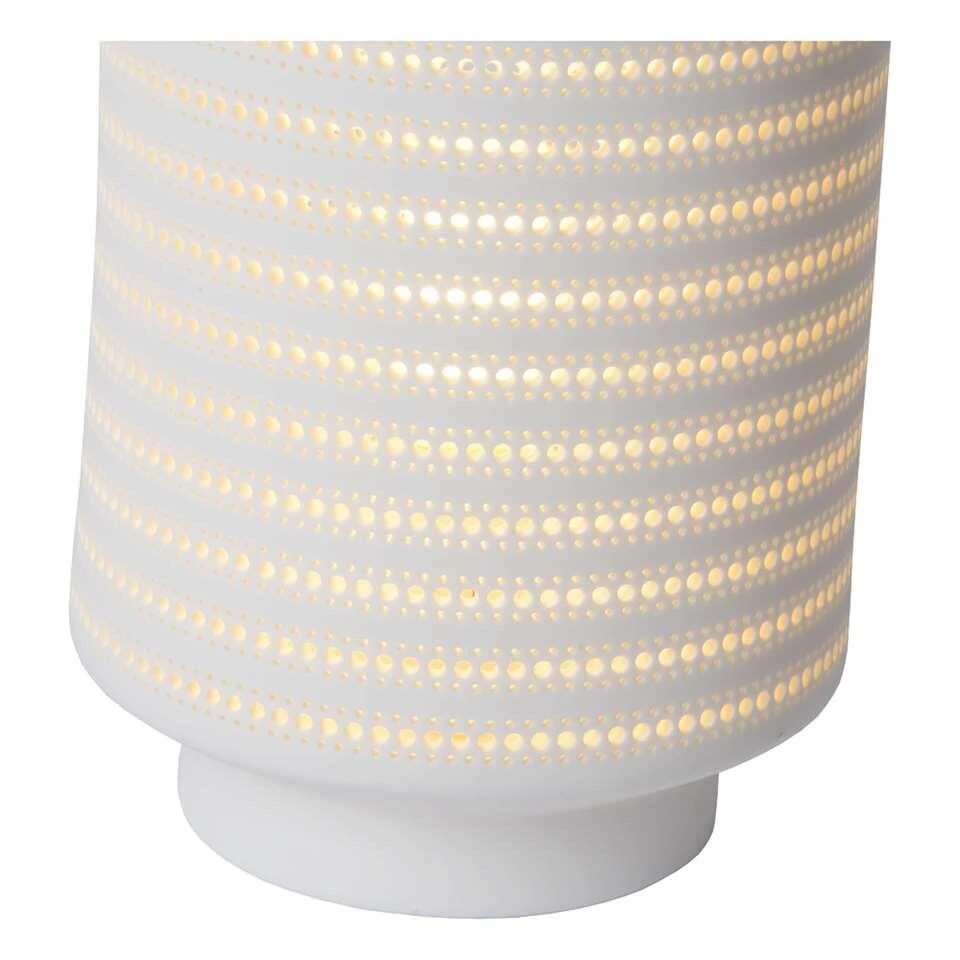 Lucide tafellamp Jamila is een witte tafellamp met E14 fitting en een afmeting van 15,5×15,5×24,5 cm. Maak kennis met Jamila: landelijke luxe in de vorm van een tafellamp. Jamila stopt het traditionele windlicht in een nieuw jasje. Het porseleinen ontwerp combineert grotere en kleinere openingen voor een maximale speling van het licht. Een dame met klasse, zoals Jamila, heeft oog voor detail. Daarom werd de handgreep nauwgezet uitgevoerd in hout. Jamila is 25 centimeter hoog en eenvoudig aan of uit te zetten met de schakelaar op het snoer.