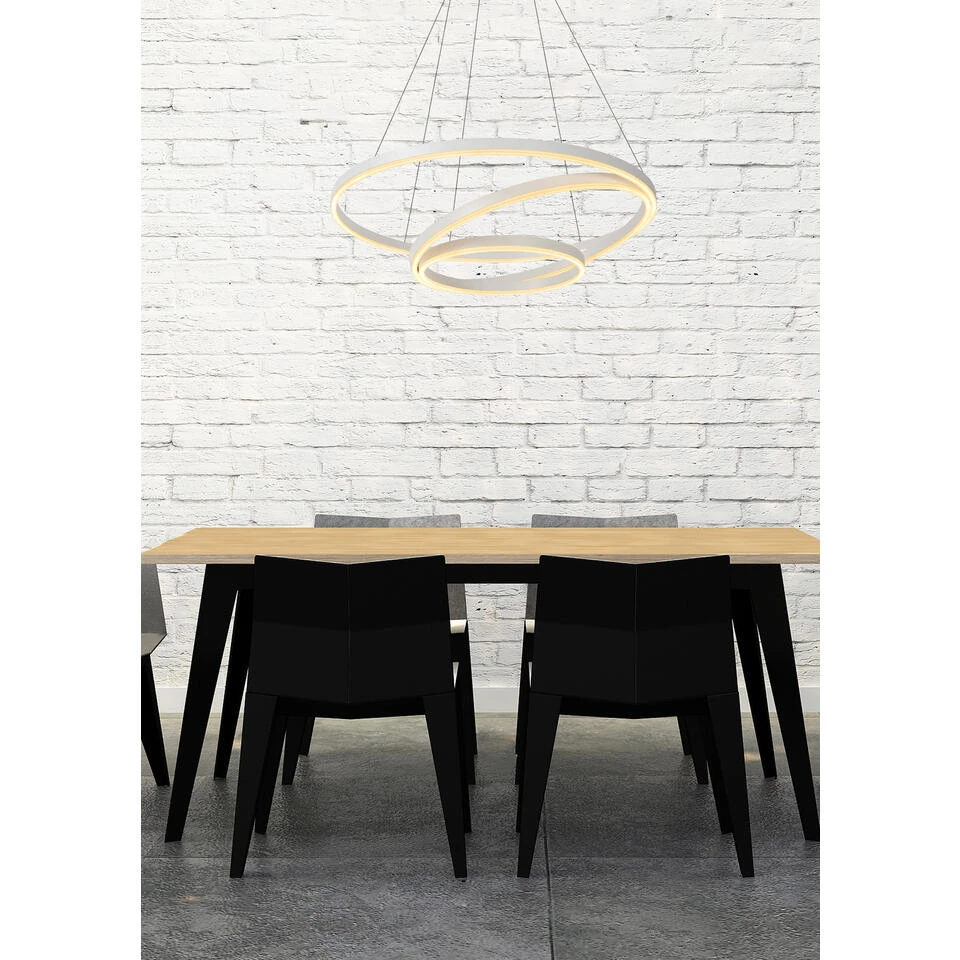 Drie ringen van licht zijn quasi verstrengeld maar toch afgescheiden van elkaar. Deze hanglamp heeft haar naam niet gestolen. Triniti staat voor de heilige drievuldigheid. Hang de ringen voor de installatie op de gewenste hoogte (minimum 60 en maximum 135 centimeter van het plafond). Dankzij de fijne verbindingskabels tussen de bevestigingsplaat en de lichtbronnen zelf, lijken de lichtbannen te zweven boven je tafel. Na aansluiting op een dimmer bepaal je zelf de lichtsterkte van de geïntegreerde led’s.