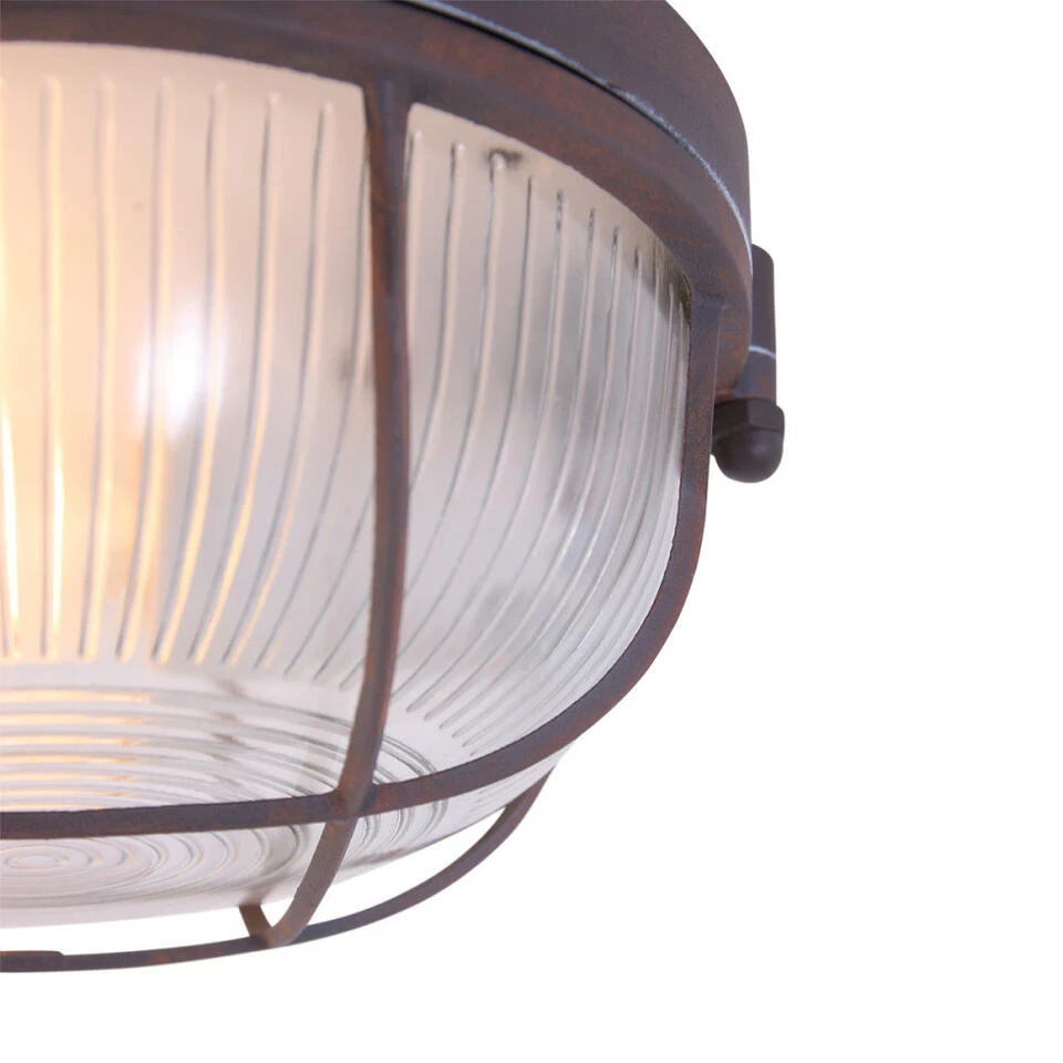 Plafondlamp uit de Mexlite Lisanne serie. De lamp heeft een landelijk design met een stoere afwerking. Het armatuur is vervaardigd uit metaal, met een roestbruine kleur en de kap is van glas. De diameter van Mexlite Lisanne is 17 centimeter. en de hoogte/diepte is 8 centimeter. In de plafondlamp zit een E27 (grote) fitting en geschikt voor lichtbronnen tot 40 Watt. De plafondlamp kan zowel op het plafond als op de muur bevestigd worden. Dimbaar: Ja, middels niet meegeleverde externe dimmer en geschikte lichtbron.