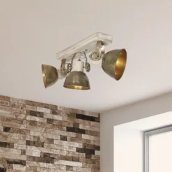 Brons kleurige 3-lichts plafond of wandspot uit de Gearwood Spot serie van Mexlite. Deze industriële 3-lichts spot is draaibaar en kantelbaar middels grote verstel wielen en beschikt over een E27 (grote) fitting geschikt voor alle lichtbronnen tot maximaal 40 Watt. Dimbaar: Ja, middels niet meegeleverde externe dimmer en geschikte lichtbron. Vervaardigd uit metaal met houten accenten. Heeft een bronzen reflector. De diameter van de kap is 15 centimeter en de totale hoogte van het armatuur is 19 centimeter.
