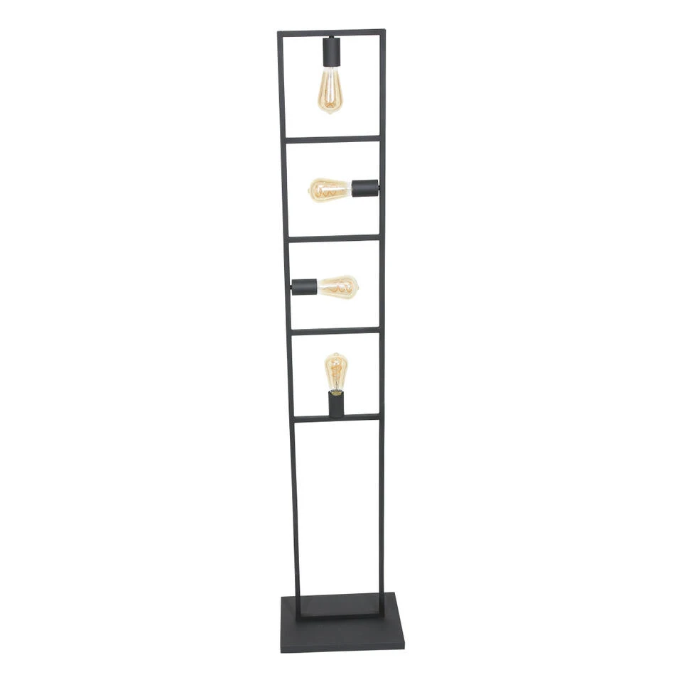 Vloerlamp uit de Mexlite Racky serie. Door het mat zwarte (sanded black) metalen open frame, krijgt de Racky een industrieel uiterlijk. De lamp is voorzien van 4 maal een E27 (grote) fitting met maximaal 40 watt per lichtbron. Een mooie lichtbron om te gebruiken zijn de deco filamenten. Hier van is de gloeidraad zichtbaar en geeft het een authentiek effect. De lichtbron word niet meegeleverd.