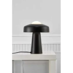 De hoogte is 34 cm en de lampenkap heeft een doorsnede van 34 cm. Kleur: Zwart met opaal glas.