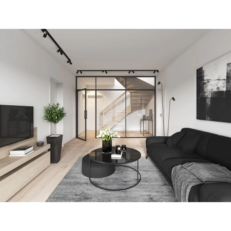 Deze 8 lichts corner rail bestaat uit 2 stukken van 150 cm die aan elkaar bevestigd worden waardoor er een rails ontstaat van 300 cm lang, het is niet mogelijk om deze in een hoek te monteren. De spots zijn bevestigd en kunnen niet verplaatst worden. De breedte van de rails is 4 cm en de lengte is 300 cm. De koker spot heeft een lengte van 10,5 cm en een doorsnede van 5,5 cm. Kleur: zwart.