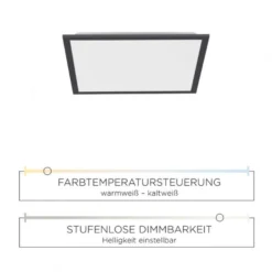 De lengte en breedte van deze vierkante platte plafondlamp is 45,5 cm en de hoogte is 6,6 cm. De LED’s verbruiken in totaal 21 Watt en die geven in totaal 2500 Lumen aan licht. De kleur van het armatuur is zwart i.c.m wit.